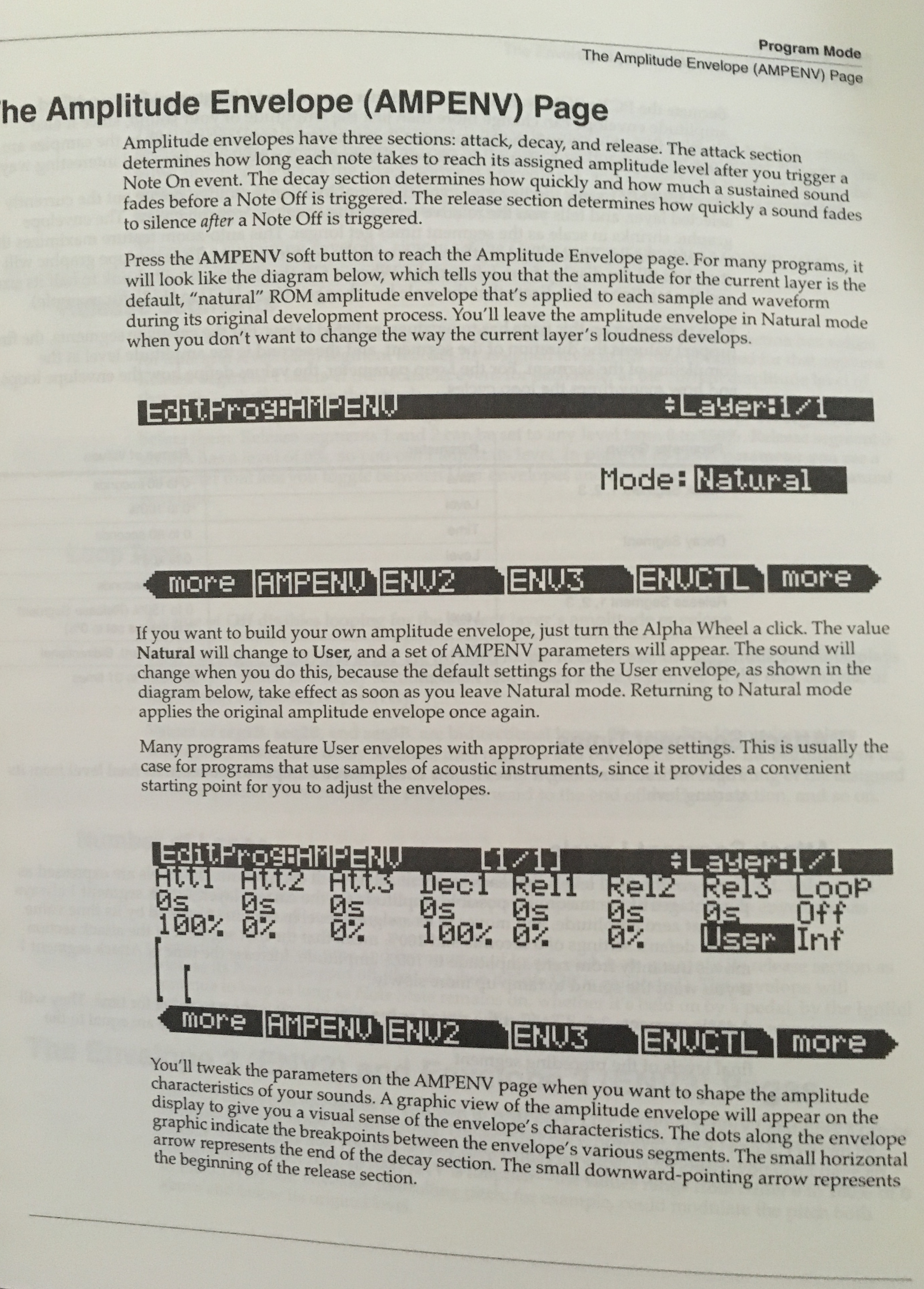 edit program> ampenv> turn wheel 1 click> mode changes to user